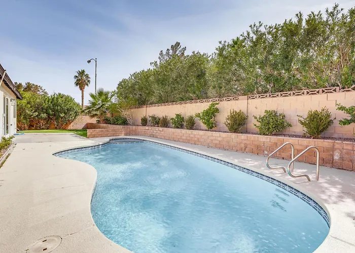 Offering a location 4.6 km from the 550-foot-tall High Roller Ferris Wheel, the 2-bedroom Pet-Friendly Las Vegas Home With Pool 4 Mi To Strip gives access to various tourist spots in the area.